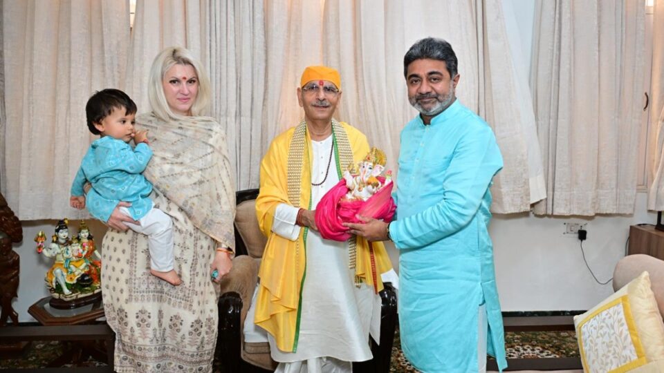 नई दिल्ली [भारत], 6 अक्टूबर: आनंदधाम आश्रम, नई दिल्ली में चल रहे श्री गणेश-लक्ष्मी महायज्ञ 2025 में डॉ. अभिषेक वर्मा, मुख्य राष्ट्रीय समन्वयक (ShivSena NDA Alliance & Elections), अपने परिवार के साथ पधारे।